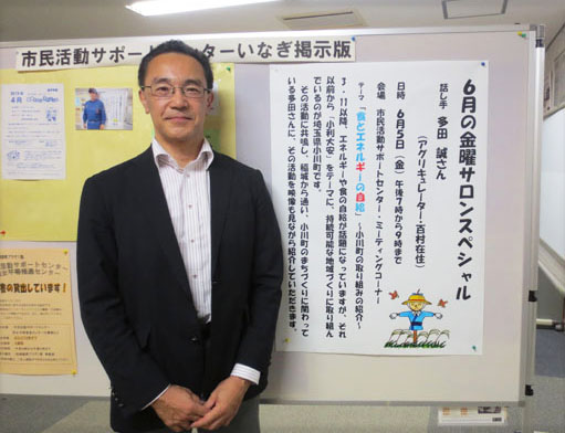 話し手の多田さんは、サラリーマンを退職後、このクローズアップ現代の映像を見て、小川町の「小利大安」をテーマにした、持続可能な地域づくりの取り組みに共鳴、それ以降、稲城から小川町に通って、そのまちづくりにも関わるようになったということです。そうした自らの体験も交えての話はとても有意義でした。
