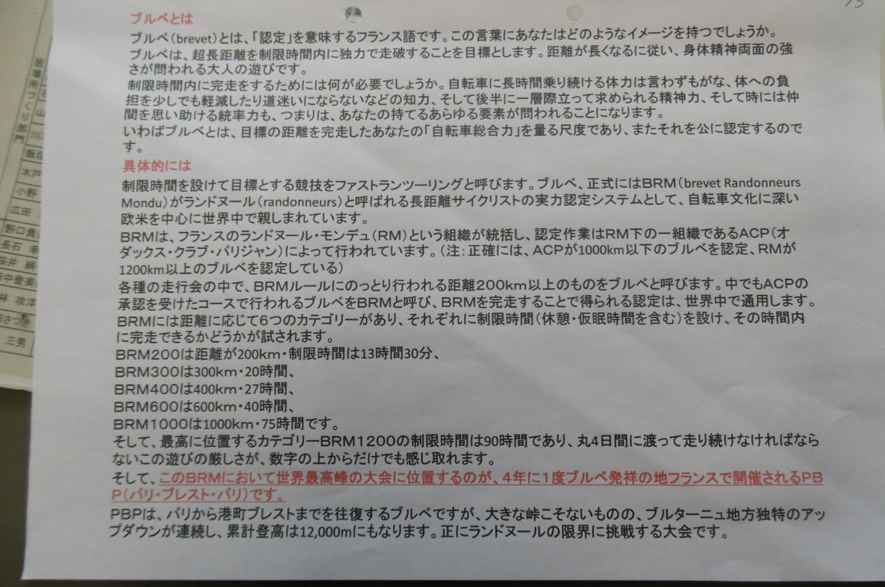 PBPは、BRMの最高峰に位置づけられた4年に1回フランスで行われます。丸山さんは、この機会を逃すと4年先になることから、自転車を始めて5年ほど経過した後、「エイヤ!」の乗りで参加したそうです。