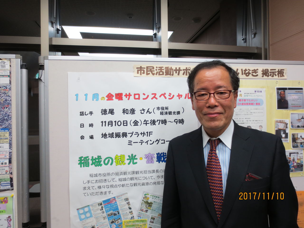 11月10日の金曜サロンスペシャルは、稲城市の経済観光課 観光担当課長の徳尾氏を話し手にお迎えし「日本の観光動向と稲城観光の動き」と題し、お話をしていただきました。