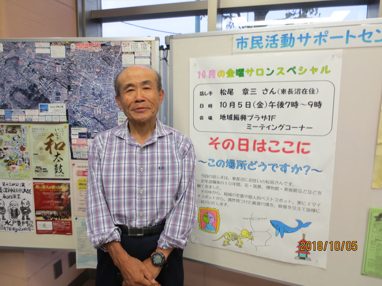 第133回 金曜サロンスペシャル 『その日はここへ~この場所どうですか?~』 2018.10.18 - 金曜サロンスペシャル 10月の金曜サロンスペシャルを、話し手に松尾章三さんをお迎えし「その日はここに~この場所どうですか?~」と題し、10月5日(金)地域振興プラザにて開催いたしました。 この日は午後から雨が降り始め、「お客様がくるかな…」と心配をされていた話し手さんですが、杞憂に終わり多くの方にご参加いただきました。一部と二部に分れ、稲城のお話しから、ご自分で廻ったところのお話をしていただきました。やはり私の外出記録については、興味深いお話しですね。ご自分の感想を入れながら、失敗例などもお話ししてくれました。 第134回 金曜サロンスペシャル 『自転車まちづくりのこれまでとこれから~コンサルタントとロードレーサーの双方の視点から~』第132回 金曜サロンスペシャル 『ボイストレーニングとシナプソロジーで健康促進と脳の活性化を‼』 新着記事 NPO法人はらっぱの会 第196回 金曜サロンスペシャ... 12月の金曜サロンスペシャル ... 【東京ボランティア・市民活動セ... ニュースレターNo.79 【独立行政法人 国立青少年教育... 【稲城市国際交流委託事業】第5... 第195回 金曜サロンスペシャ... 【支え合う会 みのり】会報誌 ... 第194回 金曜サロンスペシャ... カテゴリー サポセン情報 ブログ NPO講座 市民活動支援講座 行政協働企画講座 金曜サロンスペシャル 助成金情報 団体情報 最新情報 月別アーカイブ 2025年 11月 10月 9月 8月 6月 5月 4月 3月 2月 1月 2024年 12月 11月 10月 9月 8月 7月 6月 5月 4月 3月 2月 1月 2023年 12月 11月 10月 9月 8月 7月 6月 5月 4月 3月 2月 2022年 12月 11月 10月 9月 8月 7月 6月 5月 4月 3月 2月 1月 2021年 12月 11月 10月 9月 7月 6月 4月 3月 2月 1月 2020年 12月 11月 10月 9月 8月 7月 3月 2月 1月 2019年 12月 11月 10月 9月 7月 6月 4月 3月 2月 1月 2018年 12月 11月 10月 9月 7月 6月 4月 3月 2月 1月 2017年 12月 11月 10月 9月 7月 6月 5月 3月 2月 1月 2016年 12月 11月 10月 9月 7月 6月 5月 3月 2月 1月 2015年 12月 11月 10月 9月 7月 6月 4月 3月 2月 1月 2014年 12月 11月 10月 7月 6月 5月 4月 3月 1月 2013年 11月 10月 8月 2月 2012年 11月 9月 2月 2011年 7月 2月 2010年 12月 10月 8月 6月 4月 2月 2009年 12月 10月 8月 6月 4月 2月 2008年 12月 10月 8月 6月 4月 2月 2007年 12月 10月 8月 6月 4月 2月 2006年 12月 10月 8月 6月 4月 2月 2005年 12月 10月 8月 6月 4月