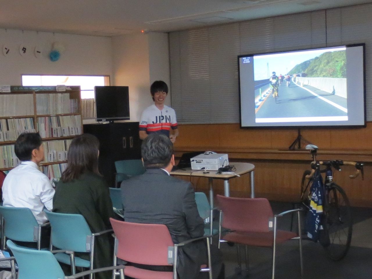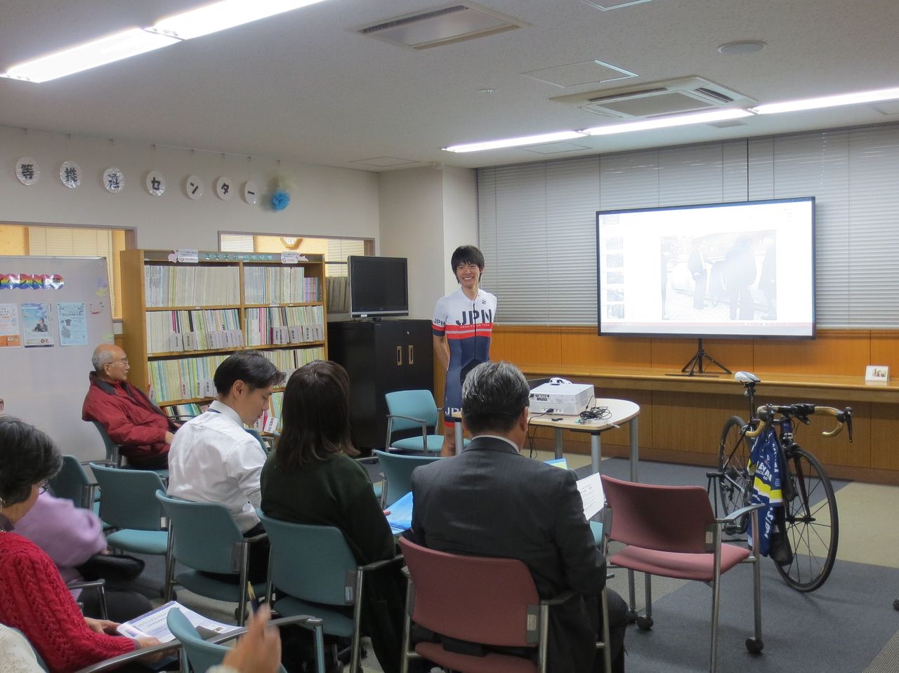 過去2回の自転車の世界大会(ロードレース・フランス、イタリアで開催)に出られた時の映像を元に、お話をしていただき、また、次の自転車の世界大会にも是非出場したいとおっしゃっていました。