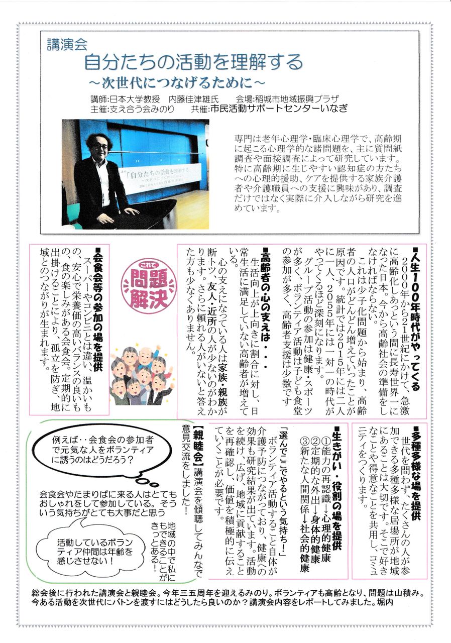 6月2日(土) 地域振興プラザにて 市民活動支援講座「自分たちの活動を理解する~次世代につなげるために~」を、日本大学教授 内藤佳津雄氏を講師にお迎えし開催しました。